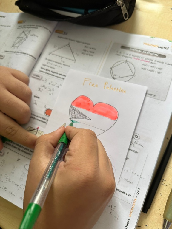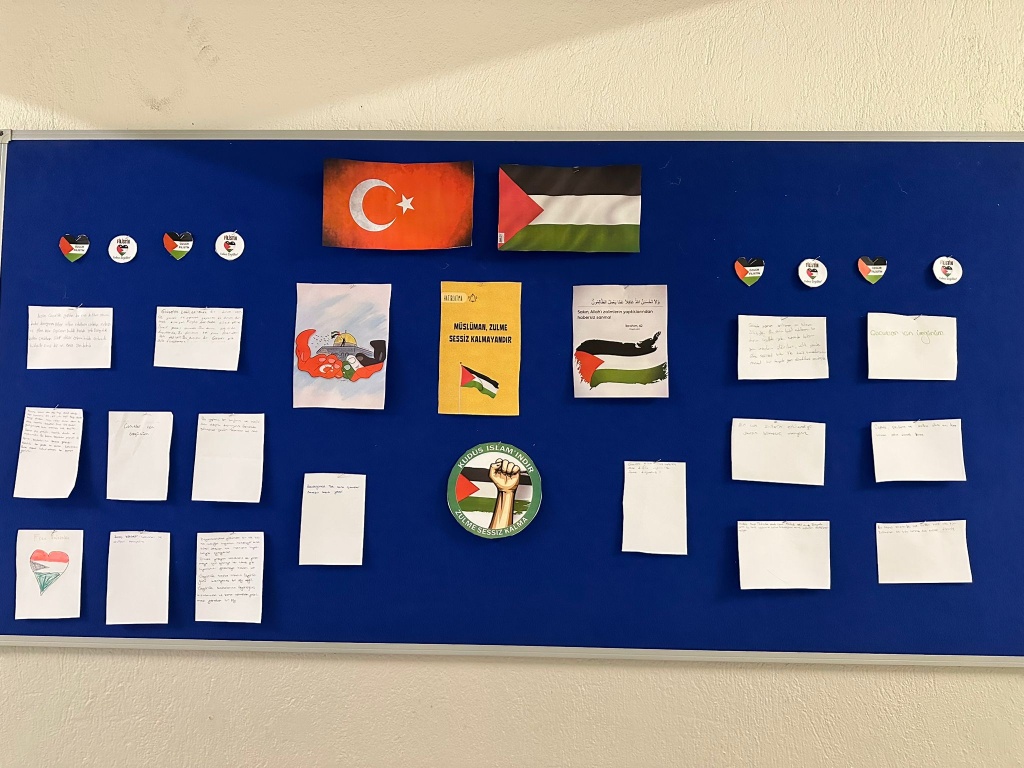 Programın en dokunaklı kısmı ise öğrencilerin duygu notları oldu. Tüm öğrencilere dağıtılan özel not kağıtlarına, Filistinli kardeşlerine duydukları hisleri, adalet taleplerini ve dualarını yazdılar. Toplanan bu notlardan özenle seçilenler, okulun ana panosuna asılarak "Vicdanımız Filistin'de" temalı bir sergiye dönüştürüldü.
